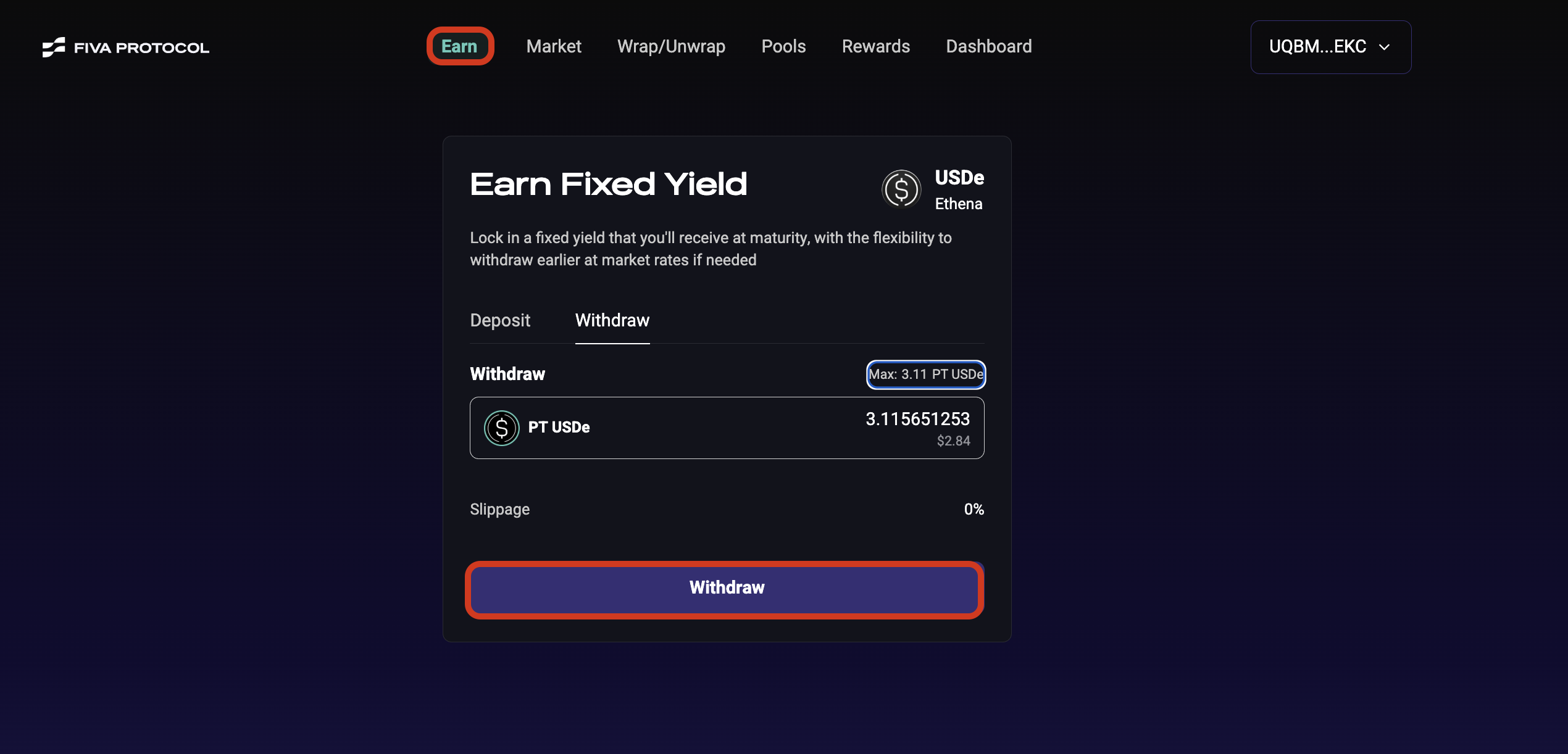 You can establish a fixed-yield position on Ethena USDe through the Earn Section: