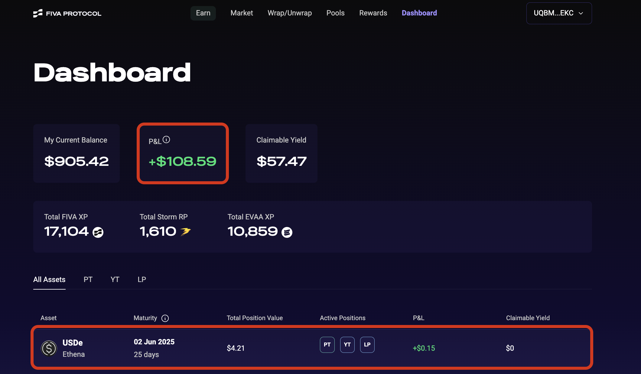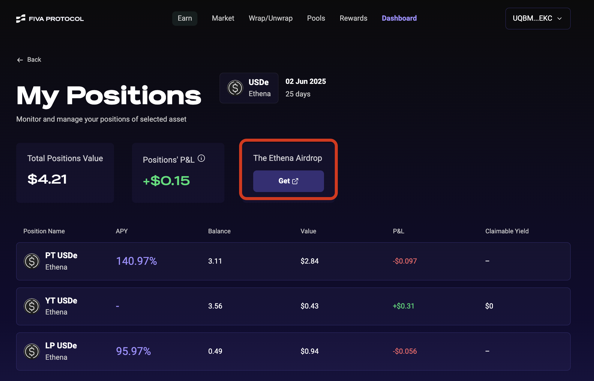 Go to your dashboard and select your Ethena position