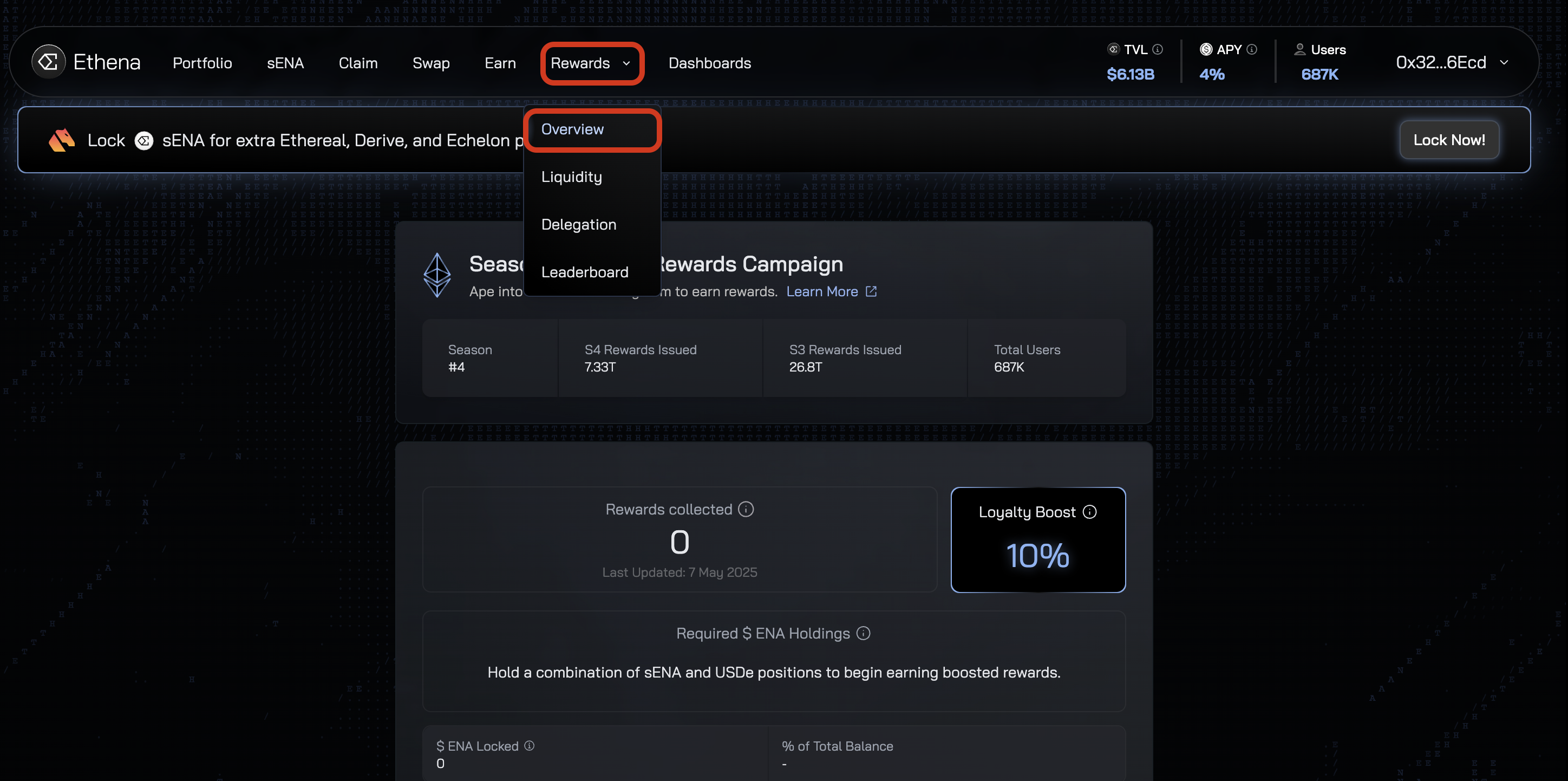 Provide an Ethereum address where you want your Ethena points/rewards to be sent
