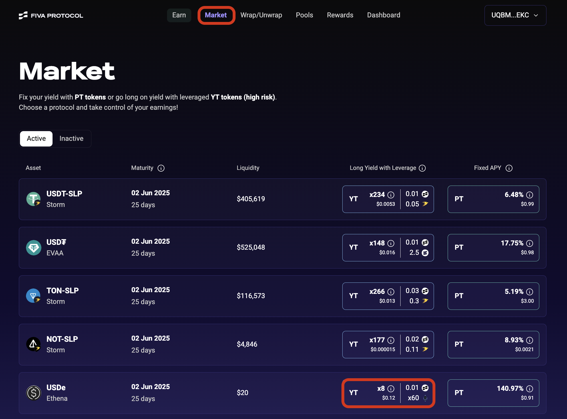 Total Efficiency = 60x (partnership multiplier) × (USDe price / YT token price)For example, if 1 USDe costs $1 and YT tokens cost $0.1 each, your effective farming efficiency would be: