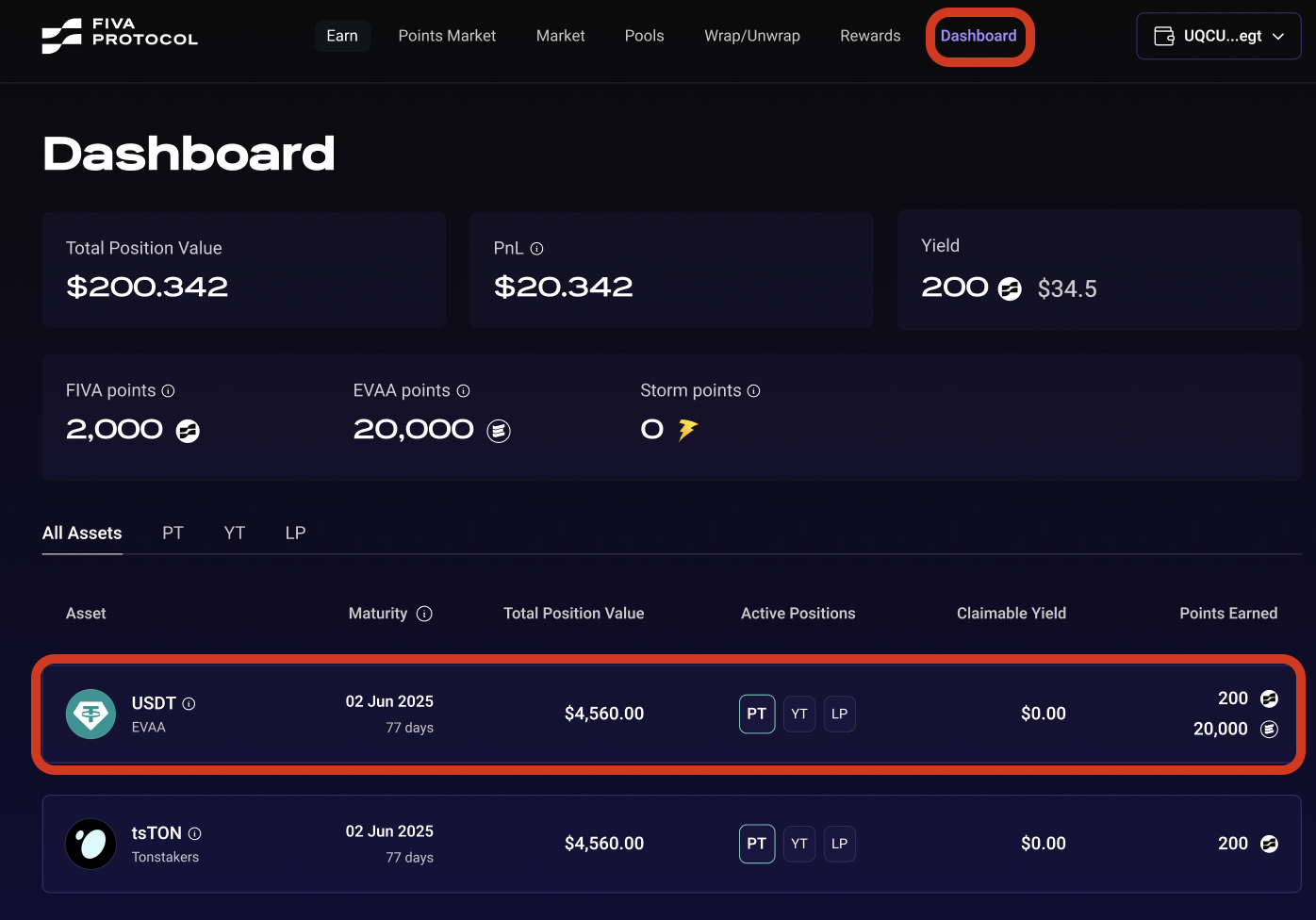 FIVA's minting feature provides a unique way to access your future EVAA yields today rather than waiting. While this use case might not be appropriate for those seeking to maximize EVAA points, it offers valuable flexibility for users who need immediate liquidity without sacrificing their principal position.